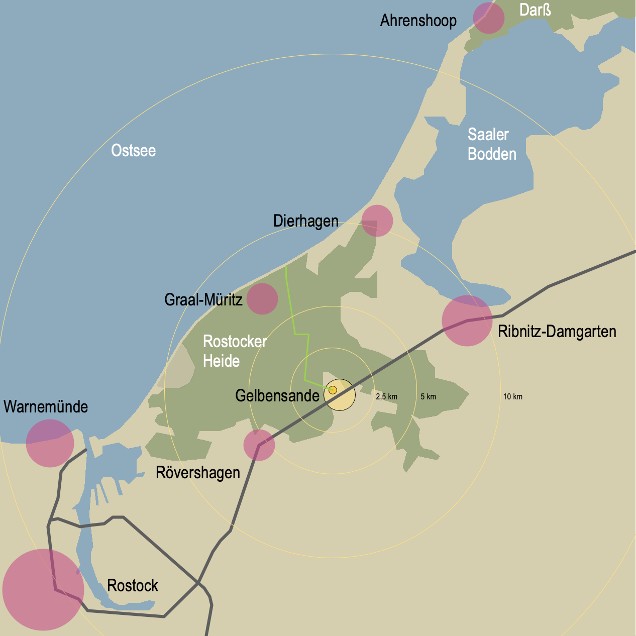 Die Rostocker Heide ist der größte zusammenhängende Küstenwald Deutschlands. Mit dem Gelbensander Forst und der Alten Heide ergibt sich ein weitgestrecktes Waldgebiet durchzogen von einem Rad-, Reit- und Wanderwegenetz.
